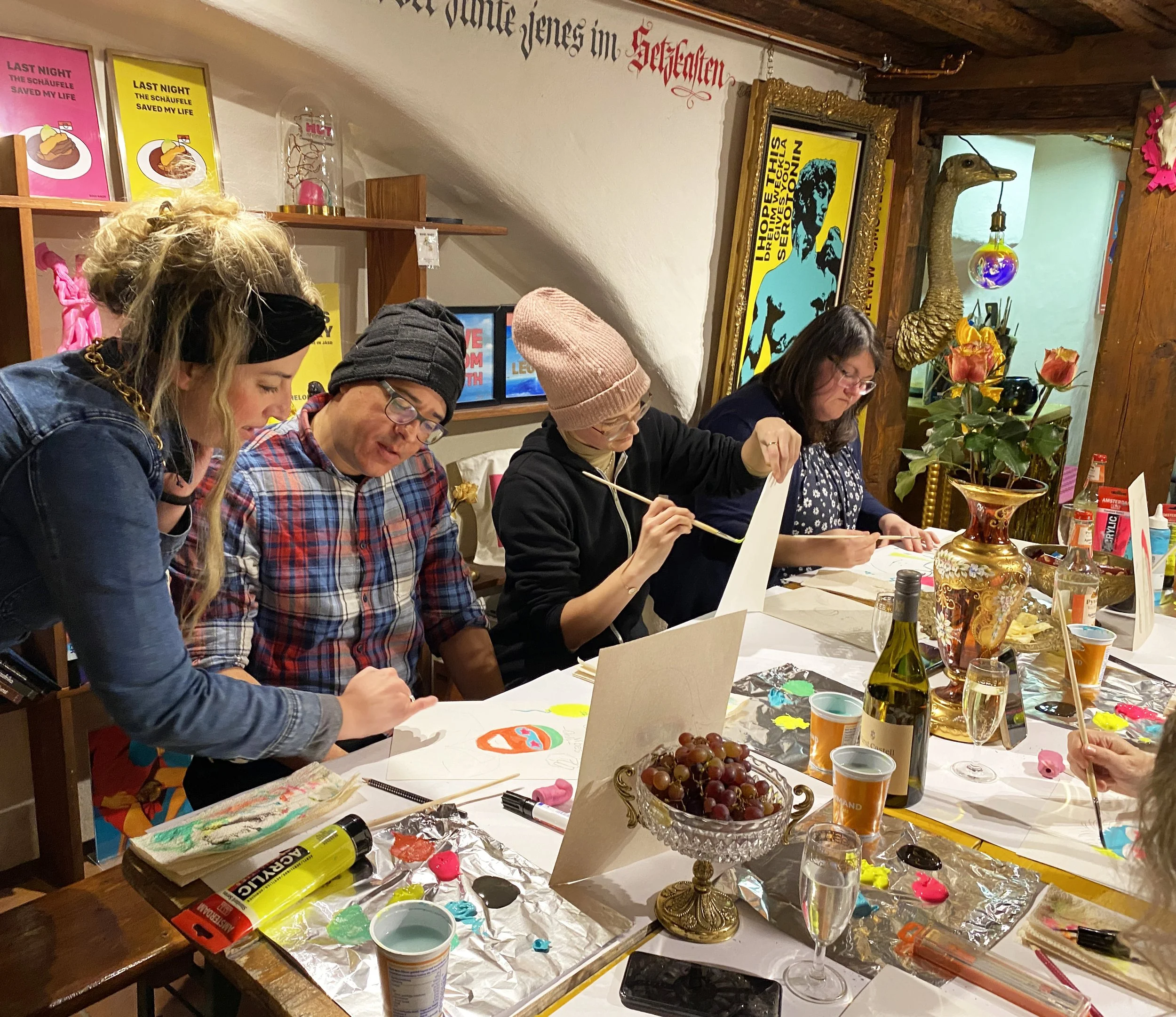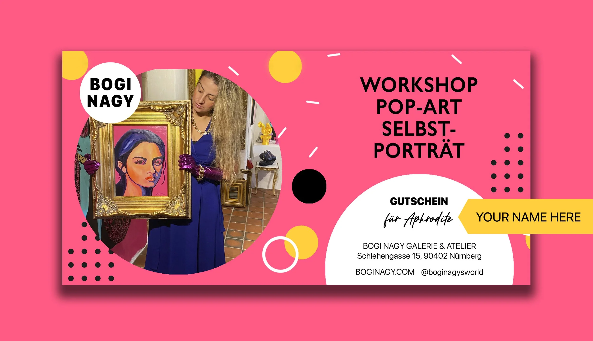 Tauche ein in ein faszinierendes Erlebnis voller lebendiger Farben, markanter Konturen und selbstironischer Texte. Dieser einzigartige Workshop findet in einem über 500 Jahre alten Fachwerkhaus mitten in der Nürnberger Innenstadt statt, was der Entstehung moderner Kunst eine außergewöhnliche Atmosphäre verleiht. Die Teilnehmer können sich vom Flair dieses geschichtsträchtigen Ortes inspirieren lassen, während sie unter der einfühlsamen Anleitung der bildenden Künstlerin Bogi Nagy ihre künstlerische Vision in die Realität umsetzen.